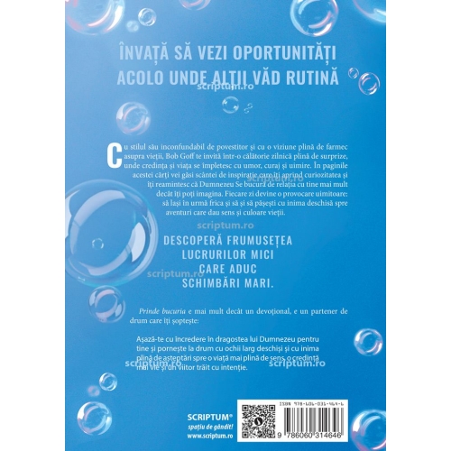 Prinde bucuria te invita sa lasi in urma ciclurile nesfarsite de planuri si ezitari si sa abordezi viata si credinta cu multa curiozitate, bucurie, uimire si speranta. Viata este o aventura plina de sens, iar aceasta carte iti ofera 365 de zile de inspiratie si motivatie. In fiecare zi vei fi inspirat de un verset din Biblie, vei fi captivat de incurajari care iti vor intari credinta si te vor provoca sa gandesti liber si sa traiesti din plin.
