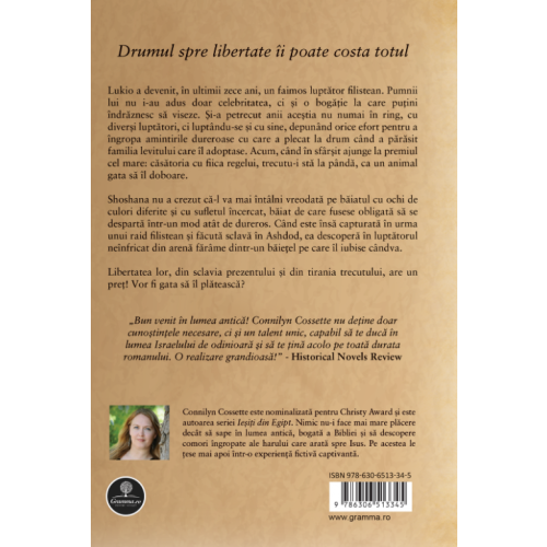 Shoshana nu a crezut că-l va mai întâlni vreodată pe băiatul cu ochi de culori diferite și cu sufletul încercat, băiat de care fusese obligată să se despartă într-un mod atât de dureros. Când este însă capturată în urma unui raid filistean și făcută sclavă în Ashdod, ea descoperă în luptătorul neînfricat din arenă fărâme dintr-un băiețel pe care îl iubise cândva. Libertatea lor, din sclavia prezentului și din tirania trecutului, are un preț! Vor fi gata să îl plătească?