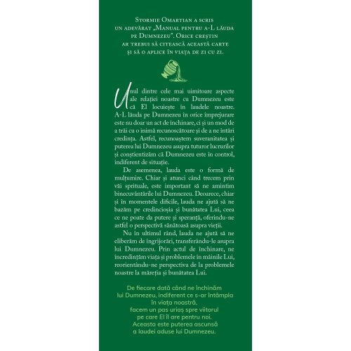 Stormie Omartian a scris un adevarat „Manual pentru a-L lauda pe Dumnezeu”. Orice crestin ar trebui sa citeasca aceasta carte si sa o aplice in viata de zi cu zi.