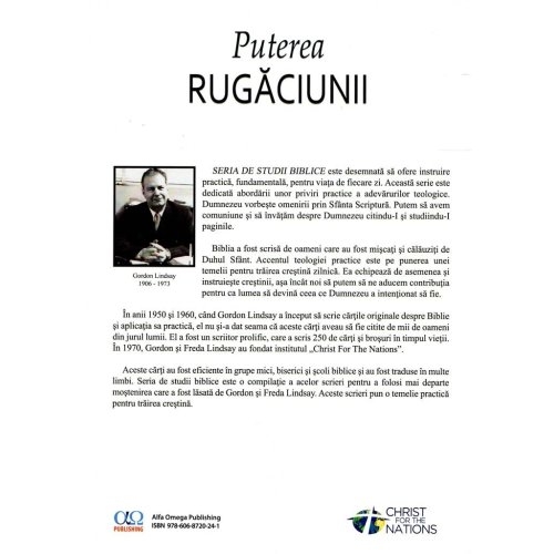 Cand ajungi sa intelegi toate beneficiile pe care Dumnezeu ni le-a oferit prin Fiul Sau, Isus Hristos, vei vedea ca rugaciunea ar trebui sa fie o parte esentiala a vietii noastre zilnice. Cand afli de asemenea cum Dumnezeu raspunde la rugaciune in Biblie, vei incepe sa intelegi ca miracolele pot si vor fi parte a vietii tale.Aceasta carte consemneaza marturiile adevarate ale oamenilor din timpurile biblice pana in prezent si arata cum rugaciunea a schimbat vietile lor. Consemnarile biblice, care au fost scrise de istoricii antici, barbati si femei ai lui Dumnezeu, au fost confirmate de cercetatori de-a lungul secolelor. Oameni de stiinta, academicieni, teologi si specialisti de orice fel continua sa cerceteze necunoscutul pentru a gasi chei pentru intelepciune si o intelegere mai profunda pentru trairea practica.
