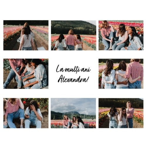 Ramă foto personalizată cu nume și 8 poze – La multi ani!