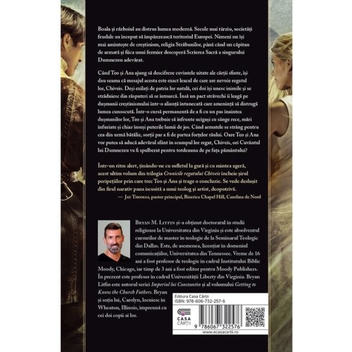 BRYAN M. LITFIN și-a obținut doctoratul în studii religioase la Universitatea din Virginia și este absolventul cursurilor de master în teologie de la Seminarul Teologic din Dallas. Este, de asemenea, licențiat în domeniul comunicațiilor, Universitatea din Tennessee. Vreme de 16 ani a fost profesor de teologie în cadrul Institutului Biblic Moody, Chicago, iar timp de 3 ani a fost editor pentru Moody Publishers. În prezent este profesor în cadrul Universității Liberty din Virginia. Bryan Litfin este autorul seriei Imperiul lui Constantin și al volumului Getting to Know the Church Fathers. Bryan și soția lui, Carolyn, locuiesc în Wheaton, Illinois, împreună cu cei doi copii ai lor.