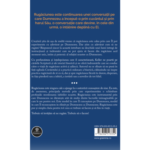 Cu profunzimea și înțelepciunea care îl caracterizează, Keller ne poartă pe cărările Scripturii și ale istoriei bisericii și ne oferă îndrumările care ne conduc către o viață de rugăciune activă și adâncă. Autorul nu se sfiește să ne pună în față oglinda Cuvântului și a practicii milenare a bisericii, călăuzindu-ne înspre practica rugăciunii de zi cu zi, dar și spre rugăciunea făcută în durere, disperare, în fața pierderii sau a iubirii, a iertării sau a nevoilor de tot felul.