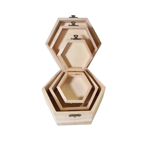 Set 3 cutii hexagonale din lemn