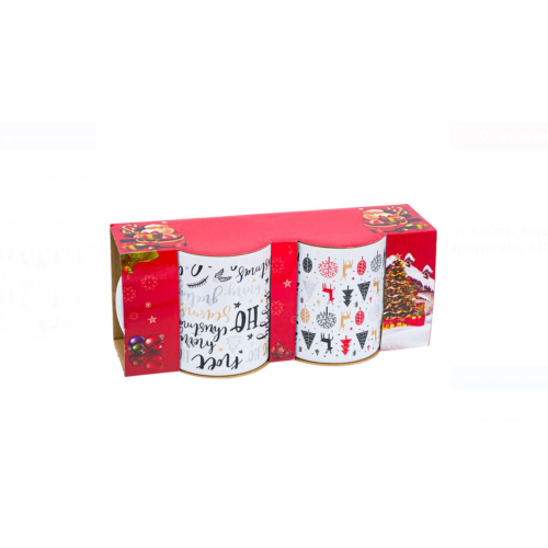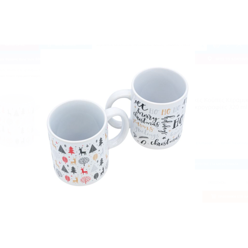 Set căni de crăciun miniaturi ceramice cu litere albe 320 ml - 2 buc.
