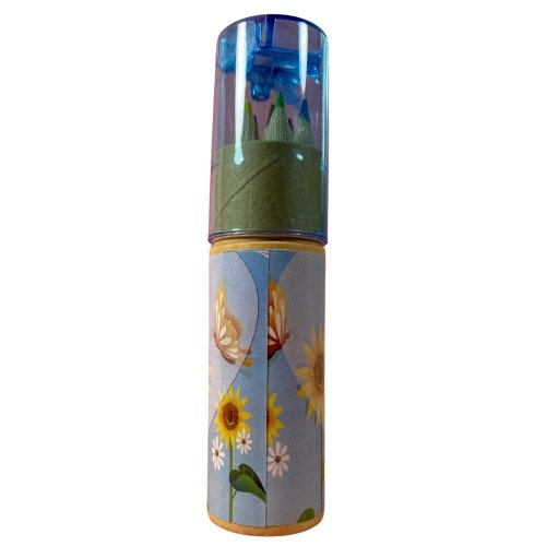 Set creioane colorate + ascuțitoare - " Sunt cu inima veselă " (albastru)