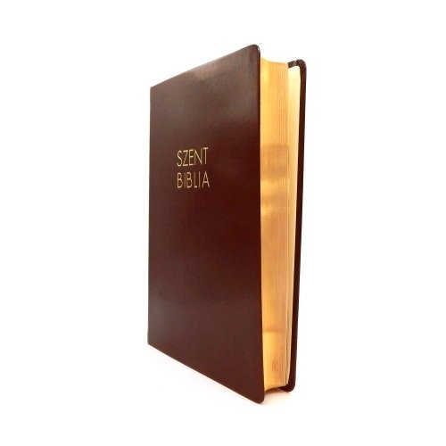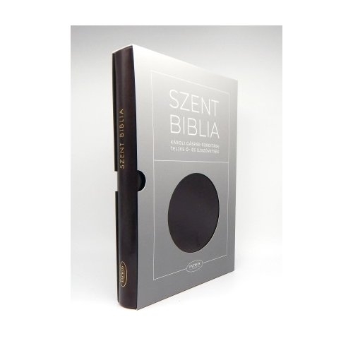 Bőrhatású, sötétbarna színű, nagy Biblia, arany felirattal, a Patmos kiadásában. Részletes térképekkel, kronológiai táblázatokkal, kereszthivatkozásokkal, Jézus szavai piros kiemeléssel. Exkluzív minőség: arany színű lapszél, varrott szegély, karton védőtok.
