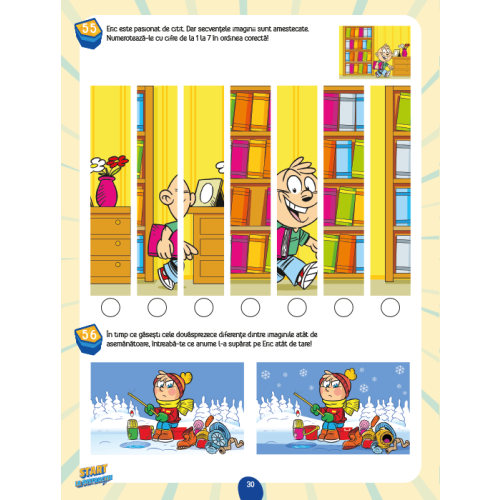 96 de pagini cu labirinturi și puzzle-uri, cu jocuri care vă provoacă să numărați, să observați cu atenție, să căutați diferențe, să colorați, să calculați, să vă folosiți cunoștințele și să dați dovadă de creativitate.
