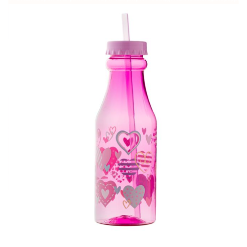 Sticla de plastic roz cu inimioare de paie 500 ml