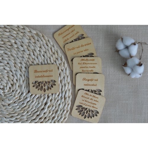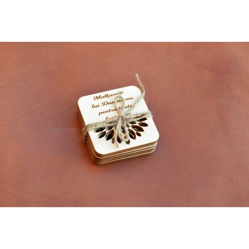 Suport de pahare/cani, din lemn, cu mesaj crestin - Set 6 buc.