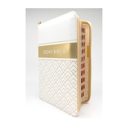 Szent Biblia - Közepes Biblia, Fehér arany mintával, Cipzárral, Regiszterrel, Károli Gáspár Forditása (Biblia medie in lb. maghiara, fermoar, index)