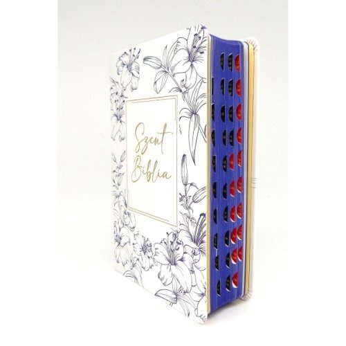 Szent Biblia - Közepes Biblia, Fehér-Kék Virágos, Regiszterrel, Károli Gáspár Forditása (Biblia medie in lb. maghiara, index)