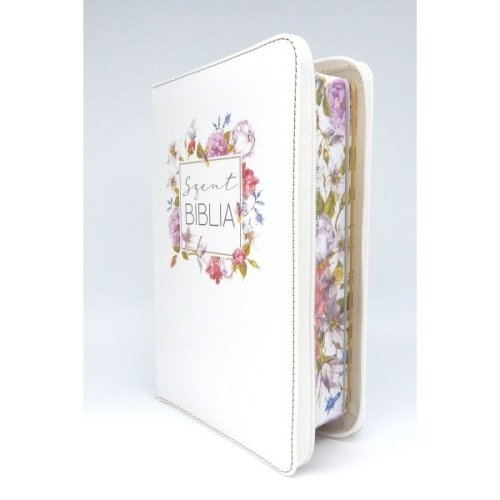 Szent Biblia - Közepes Biblia, Fehér-Színes Virágos, Cipzárral, Regiszterrel, Károli Gáspár Forditása (Biblia medie in lb. maghiara, fermoar, index)