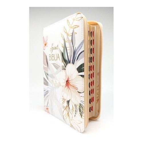Szent Biblia - Közepes Biblia, Virágos, Cipzárral, Regiszterrel, Károli Gáspár Forditása (Biblia medie in lb. maghiara, fermoar, index, model floral)