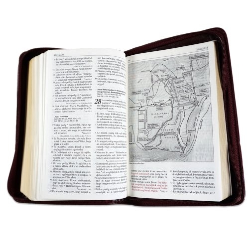 Szent Biblia, Mini Biblia, Bordo sötét, Bőr, Cipzáros, Károli Gáspár Forditása (Biblia mica, piele, in lb. maghiara, fermoar) [043 PF]