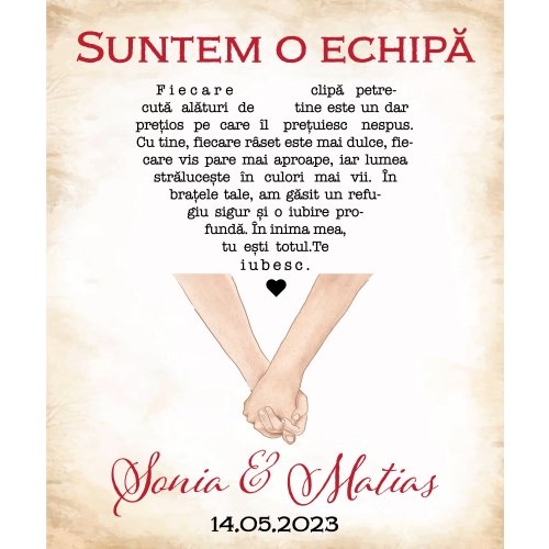 Tablou canvas personalizat cu două nume și dată – Suntem o echipă