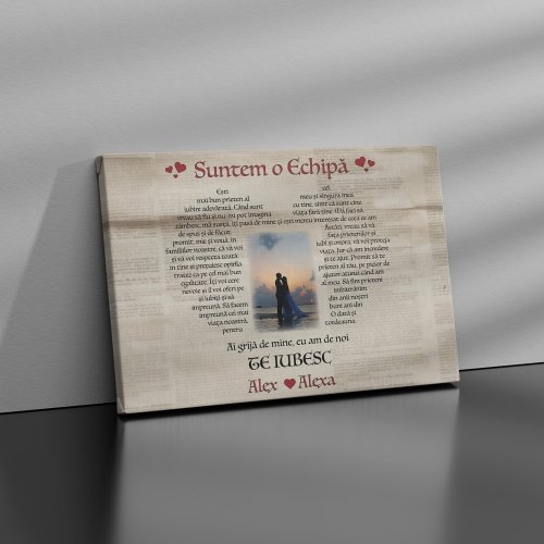 Tablou canvas personalizat cu două nume și poză – Suntem o echipă