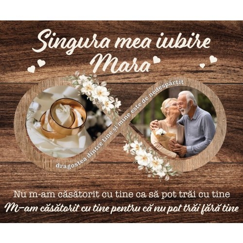 Tablou canvas personalizat cu două poze și nume – Singura mea iubire