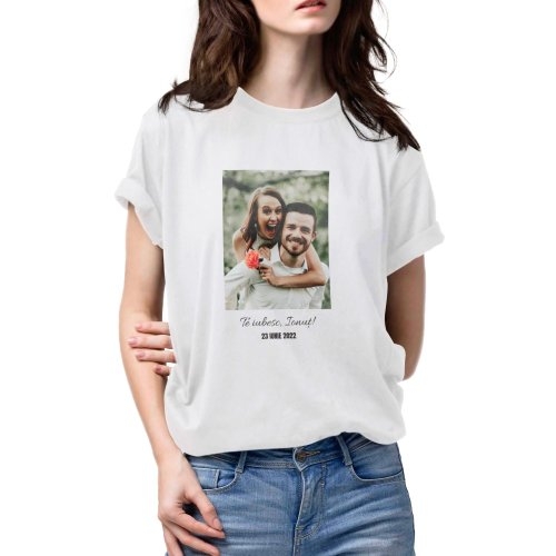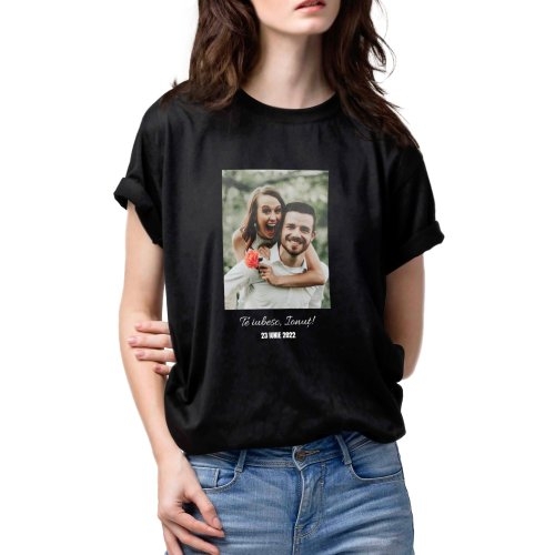 Tricou cuplu, personalizat cu poză și text – Te iubesc