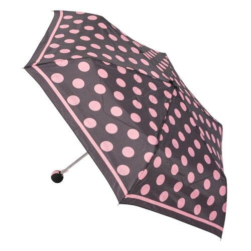 Umbrela adulti pliabila - Neagra cu buline roz (24 cm)