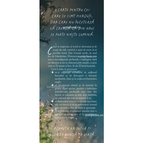 Levi Lusko a trecut prin aceleasi framantari, dar ceea ce a descoperit nu a fost disperarea, ci o bucurie profunda, surprinzatoare, si in Vartejul schimbarilor te insoteste cu delicatete prin anotimpurile tulburi ale vietii. Cu o sinceritate dezarmanta si un strop de umor, autorul tese din experiente personale si adevaruri biblice o tapiserie plina de curaj, in care haosul nu este un capat de drum, ci o rampa de lansare spre ceva nou, dar plin de sens.