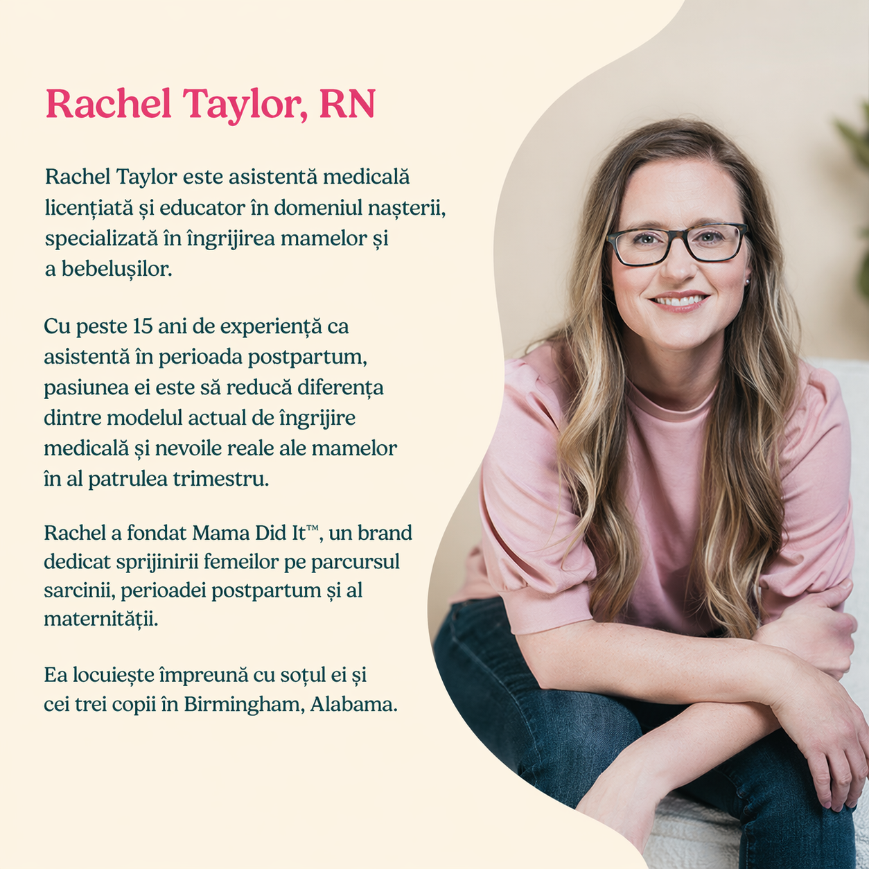 Rachel — mamă a trei copii și asistentă medicală cu peste 15 ani de experiență în îngrijirea mamă–bebeluș — a ajutat mii de mame să-și parcurgă viața postpartum cu compasiune, înțelepciune și îngrijire bazată pe dovezi. În Viața după venirea bebelușului, vei învăța cum să: